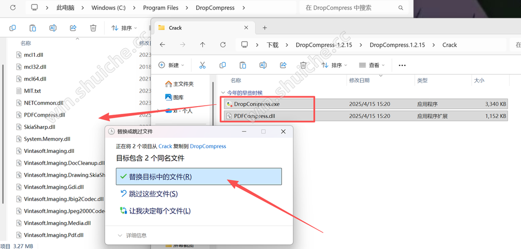 文件夹里的破解文件复制到安装目录中,点击“替换”