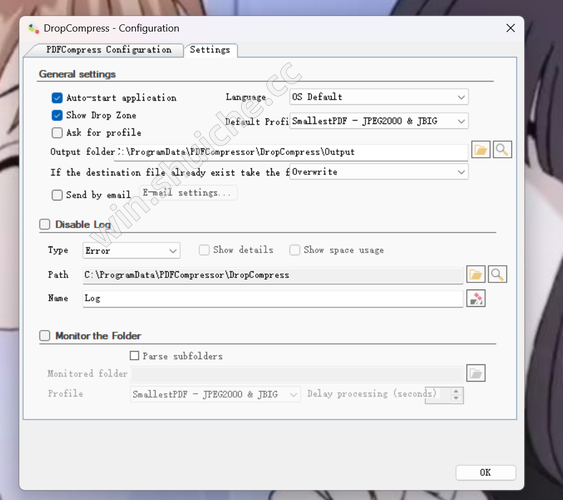 DropCompress支持通过拖放操作或借助受监控文件夹,直接一次性对多个PDF文档进行压缩和优化。DropCompress是一款可自动启动的MS Windows可执行应用程序。根据初始情况和设置,它能够对现有PDF文件进行多次优化和压缩。