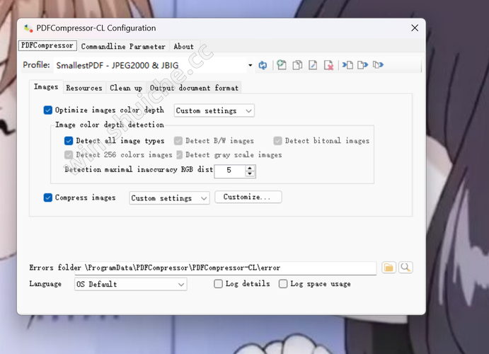 设置 JPEG,JPEG-2000,JBIG-2 压缩的许多设置选项。JPEG-2000 和 JBIG-2 上的无损和有损压缩可配置。
