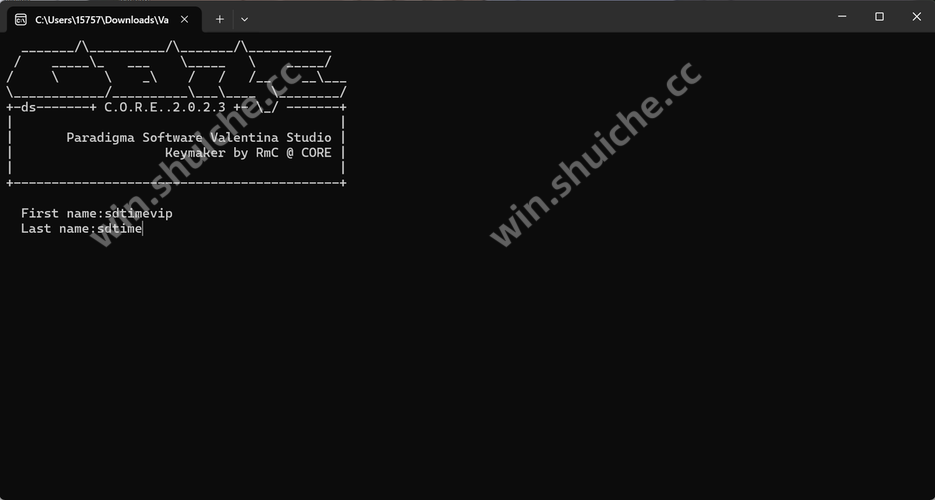 ,输入名字点击回车,再输入一次,再点击回车出现注册码