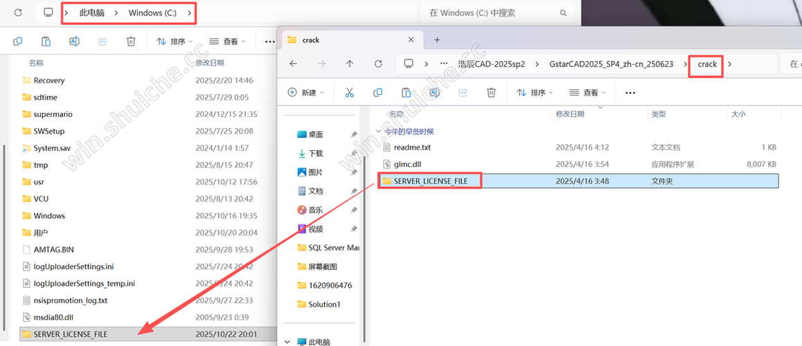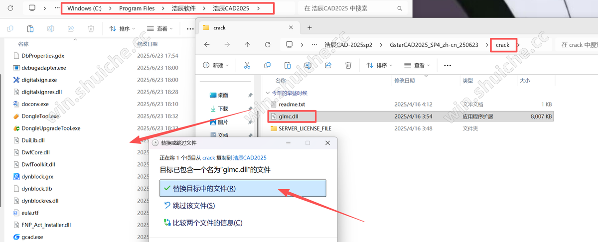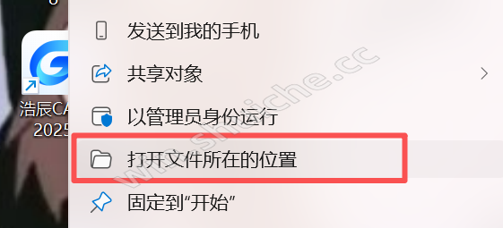 【打开文件所在的位置】,获得软件的安装目录。返回安装包将crack文件中的glmc.dll复制到软件安装目录并替换,默认目录为C:\Program Files\浩辰软件\浩辰CAD2025