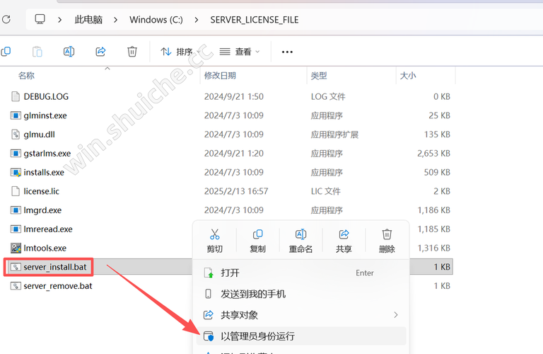 SERVER_LICENSE文件,然后右键管理员运行其中的server_install.bat