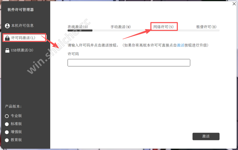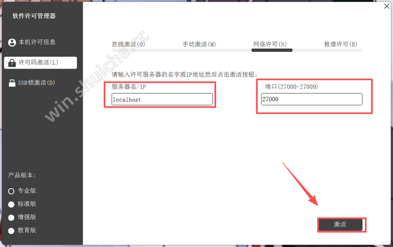 专业版→激活→许可码激活→网络许可→输入localhost和27000→激活
