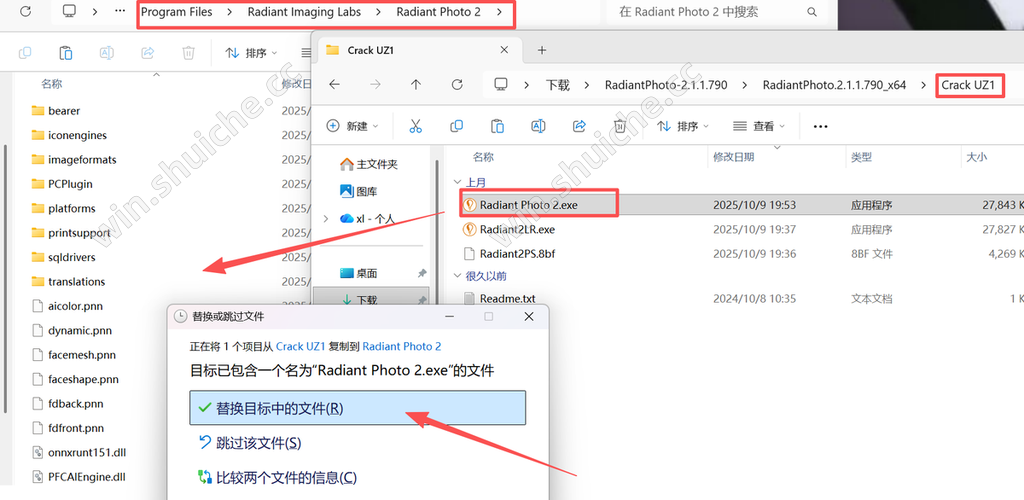 crack UZ1文件夹中的Radiant Photo 2,复制到文件夹:C:\Program Files\Radiant Imaging Labs\Radiant Photo 2点击替换
