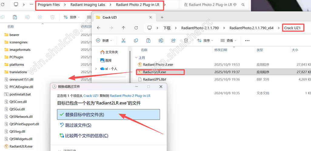 Radiant2LR.exe复制到C:\Program Files\Radiant Imaging Labs\Radiant Photo 2 Plug-in LR,点击替换