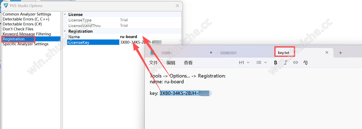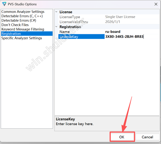 Registration,将key文本里的激活码依次复制粘贴到软件激活框内,点击OK
