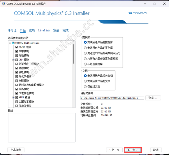 - 选择安装模块和安装路径,默认安装在C盘,点击