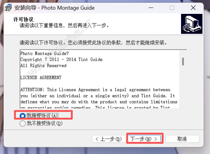 “我接受此协议”,点击“下一步”