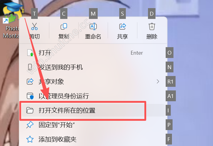 【打开文件所在的位置】,获得软件的安装目录