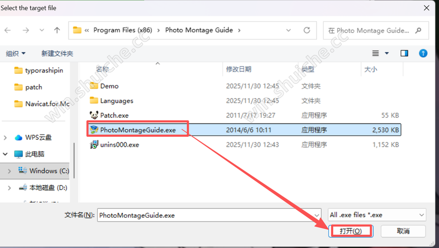 在打开的窗口选择本软件程序点击